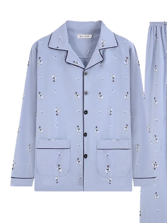 Pyjama Homme Manches Longues Bleu