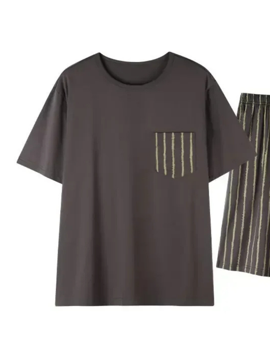 Pyjama Short Homme Marron Rayé